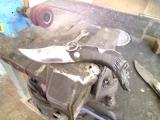 Le manche est en corne de bellier tete de sanglier sculptée.
